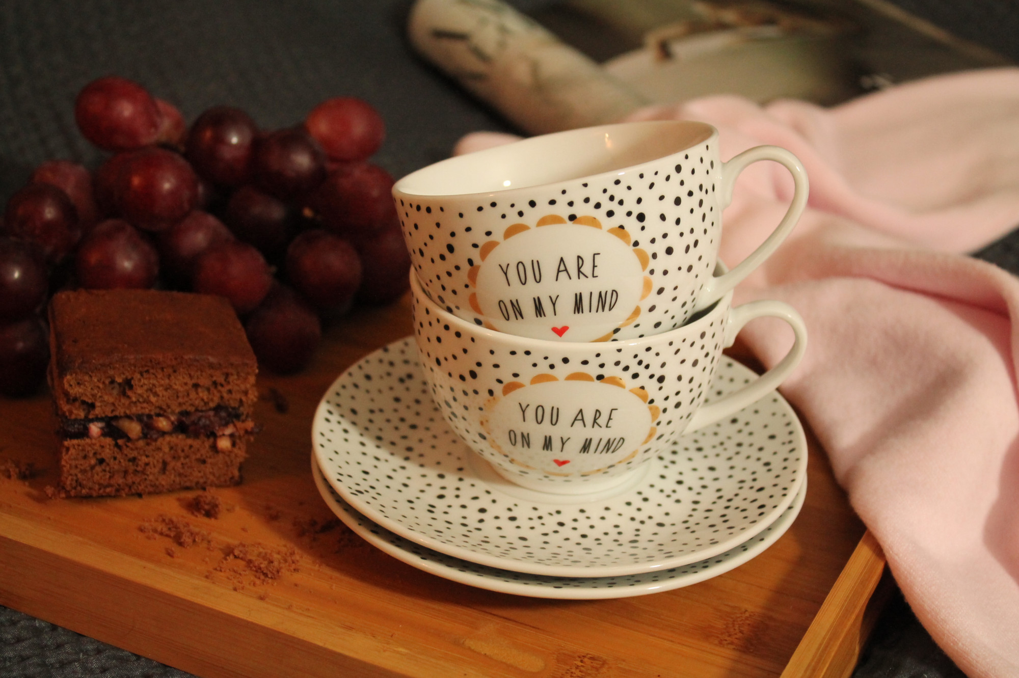Aby estetycznie podać herbatę lub kawę, w naszej kuchni powinien się znaleźć komplet porcelanowych filiżanek. Zamiast klasycznej, białej porcelany, możesz jednak wybrać kolorowe naczynia z oryginalnym napisem. Dzięki temu poranki w towarzystwie twojej drugiej połówki staną się jeszcze przyjemniejsze.