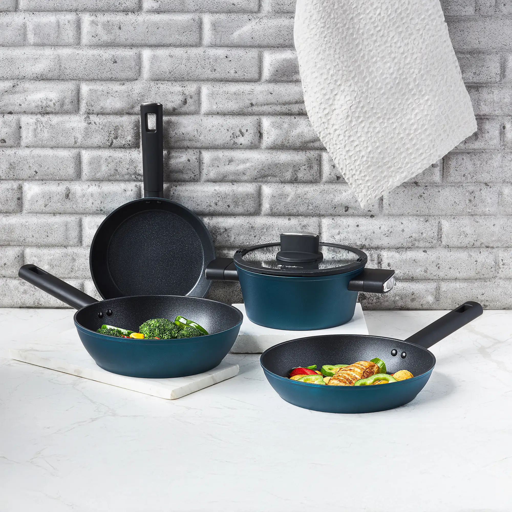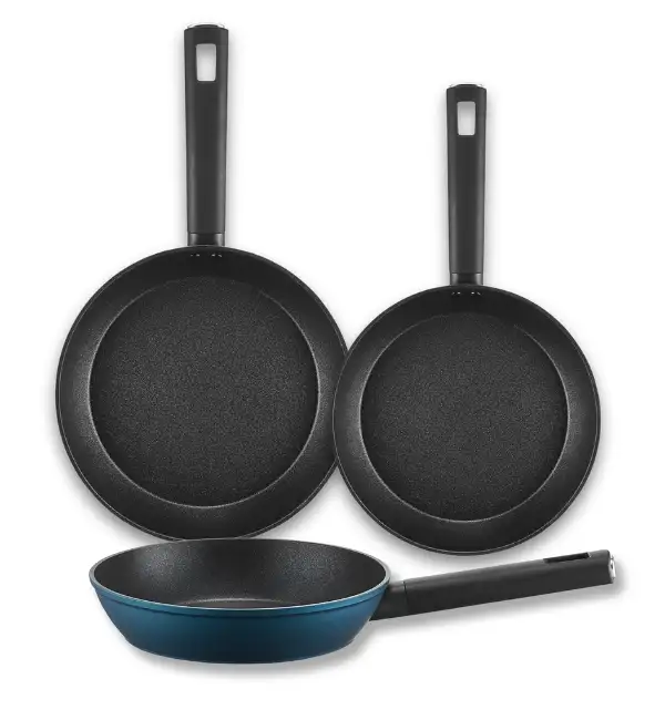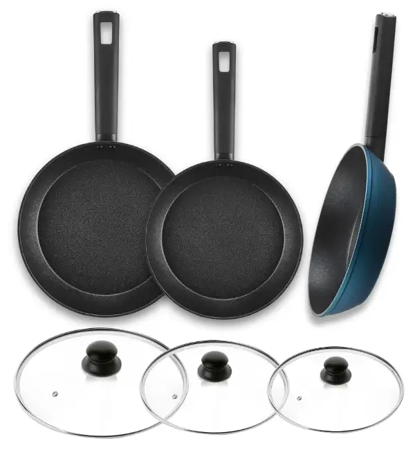 AMBITION AZZURRO Komplet patelni 20, 24, 28 cm + Pokrywki szklane / INDUKCJA