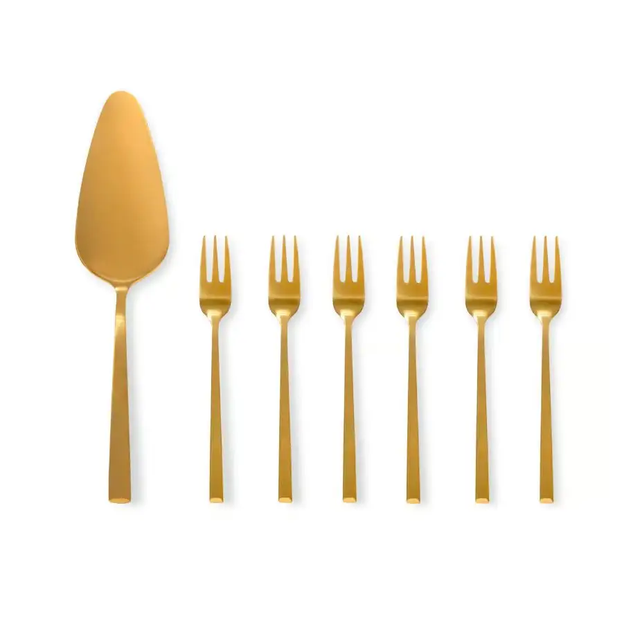 AMBITION COMO GOLD Komplet sztućców do ciasta 7 el dla 6 osób / złoty