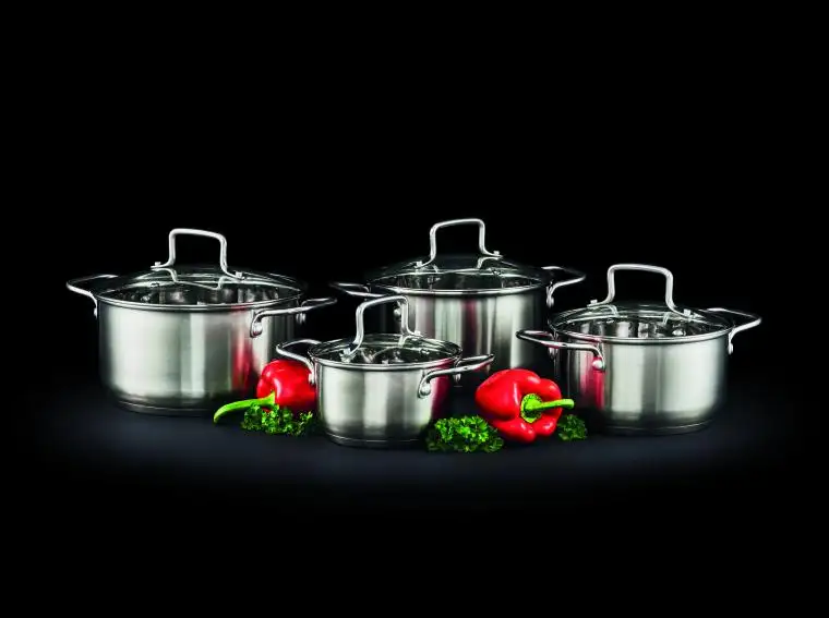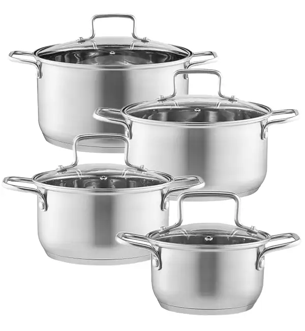 AMBITION HUGO Komplet garnków 16, 18, 20, 24 cm / z pokrywkami 8 el / stal nierdzewna / indukcja