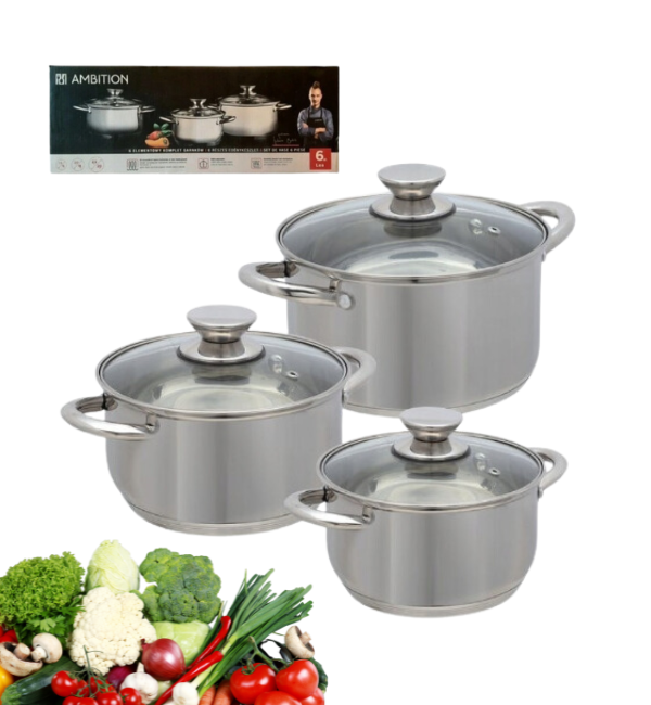 AMBITION LEA Komplet Garnki z pokrywkami 6 el / stal nierdzewna / 320045