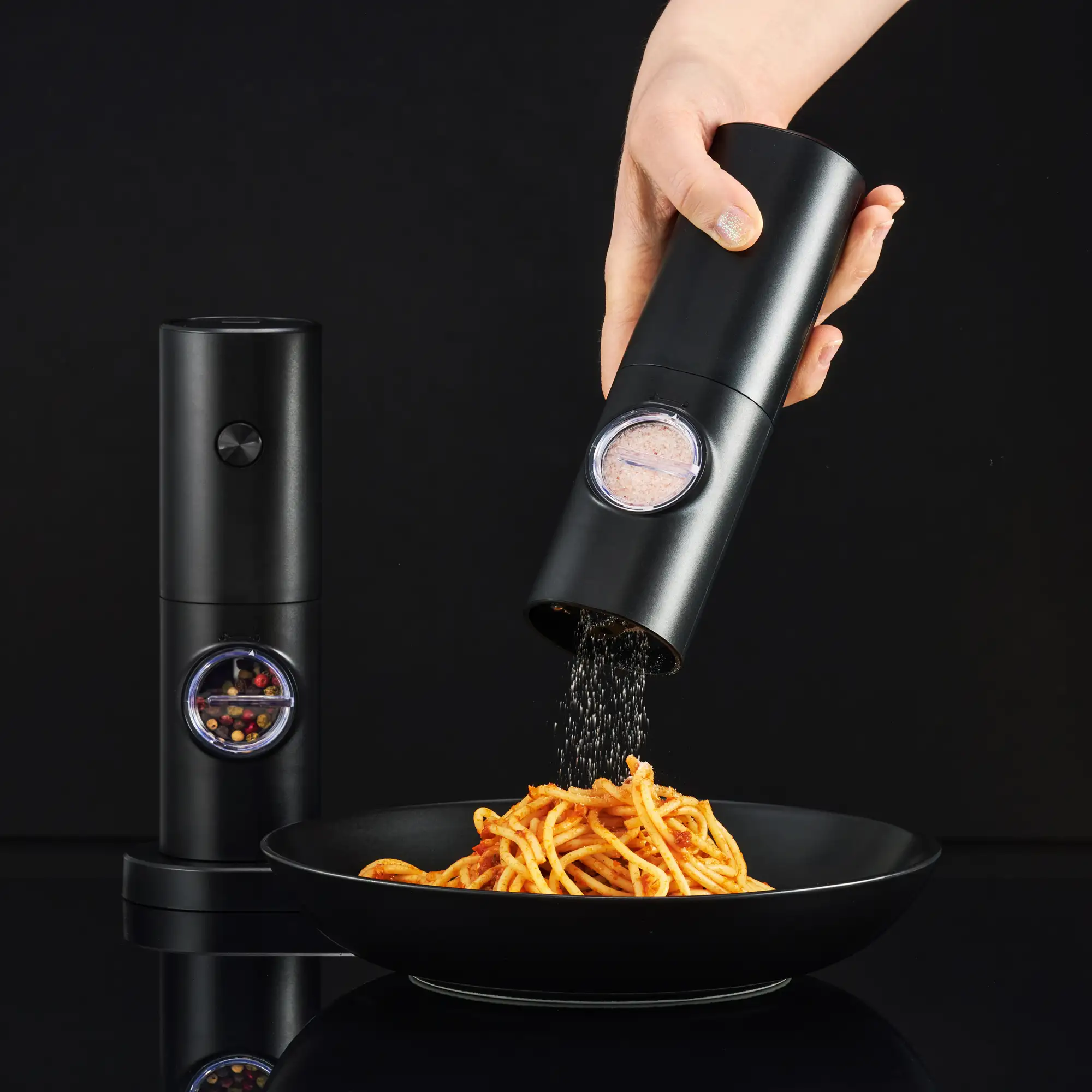 AMBITION MELLIZO Zestaw elektrycznych młynków do soli i pieprzu / czarny