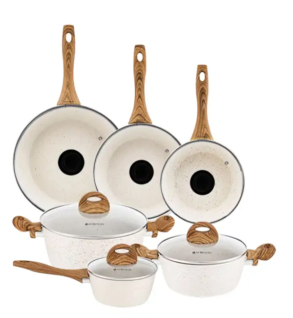 AMBITION NATURE Komplet Garnki z pokrywkami 6 el + patelnia 20, 24, 28 cm + pokrywki uniwersalne