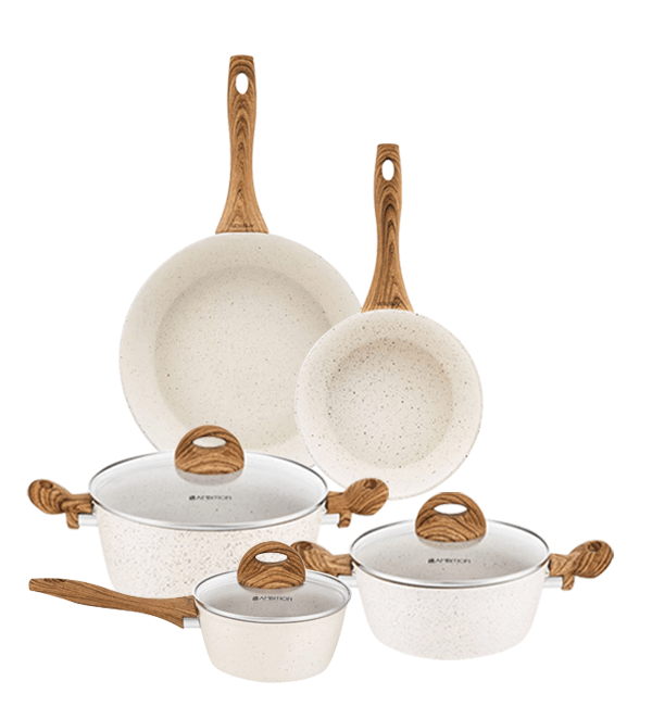 AMBITION NATURE Komplet garnków z pokrywkami 6 el + patelnie Nature 20, 28 cm