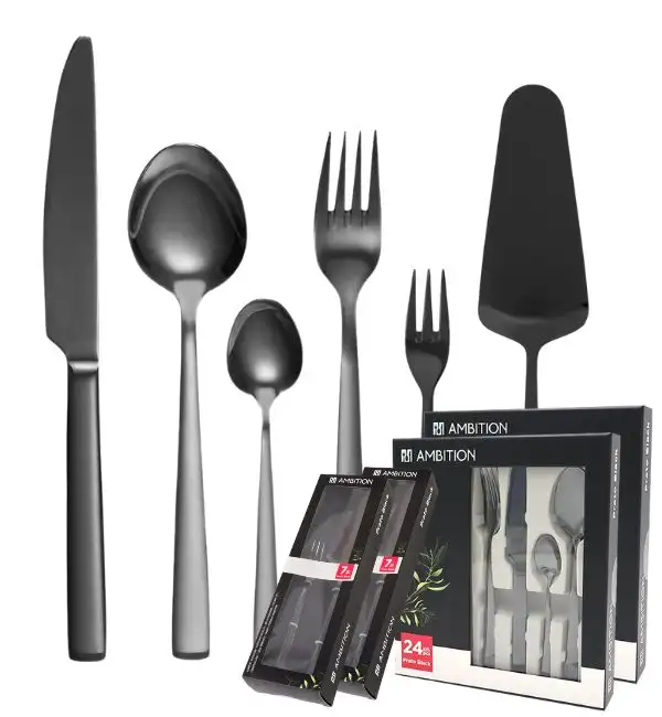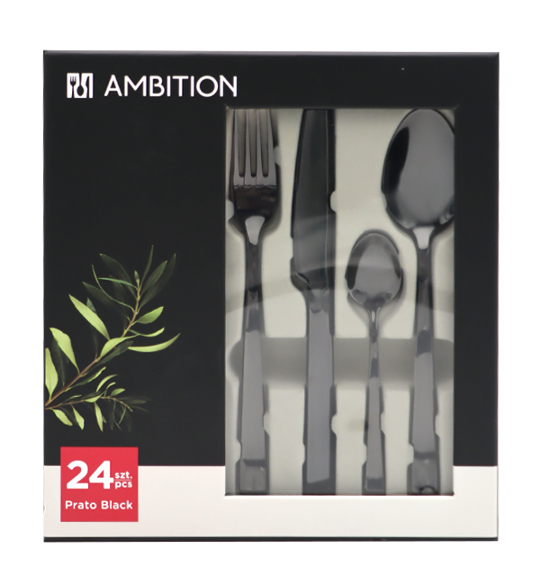 AMBITION PRATO Sztućce Komplet 48+14 el dla 12 osób / pudełko / czarne