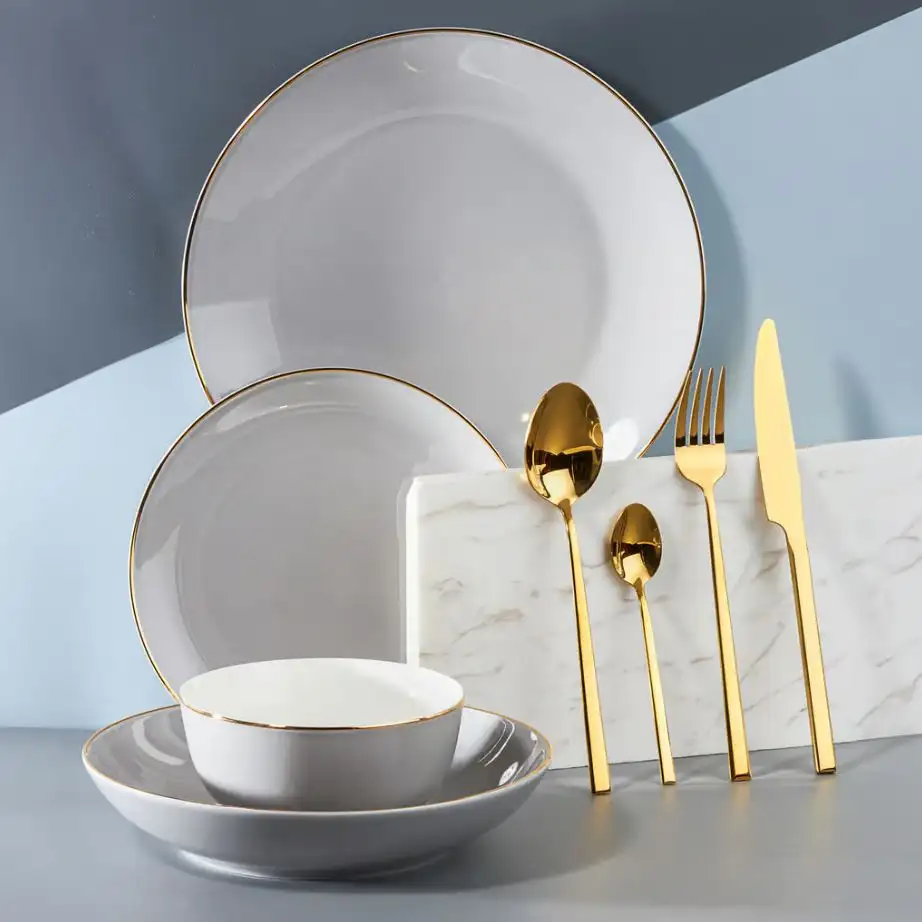 AMBITION ROYAL Talerz głęboki 22,5 cm / szary ze złotym zdobieniem