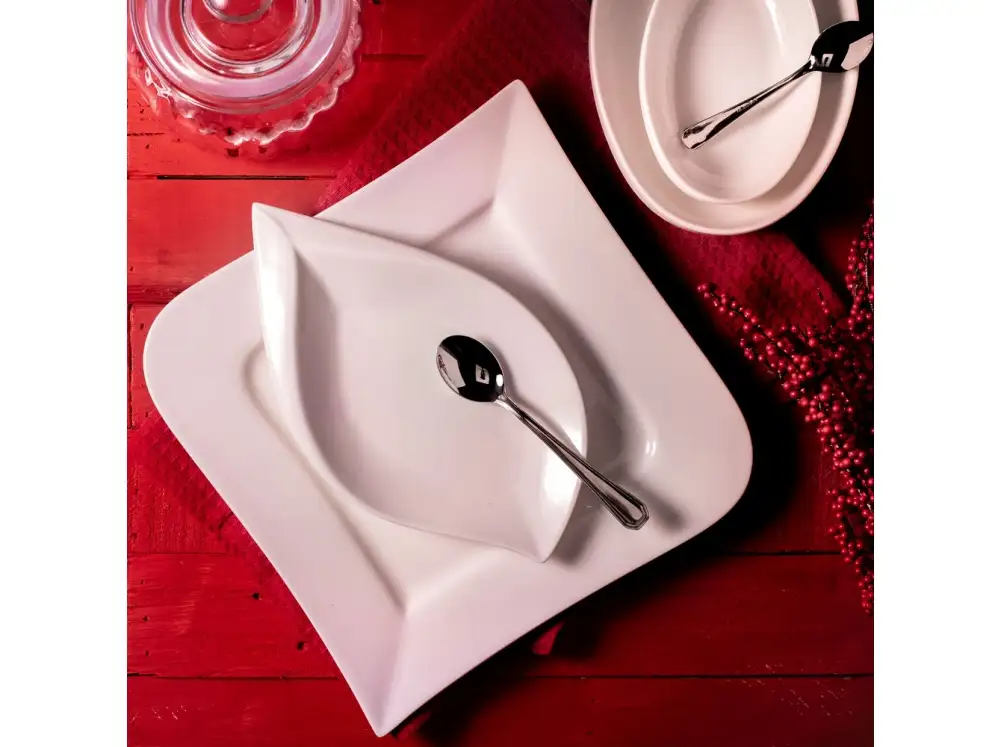 • Unikatowy wygląd w kolorze marmurowej bieli oraz oryginalny kształt łódki ożywi każdą zastawę stołową