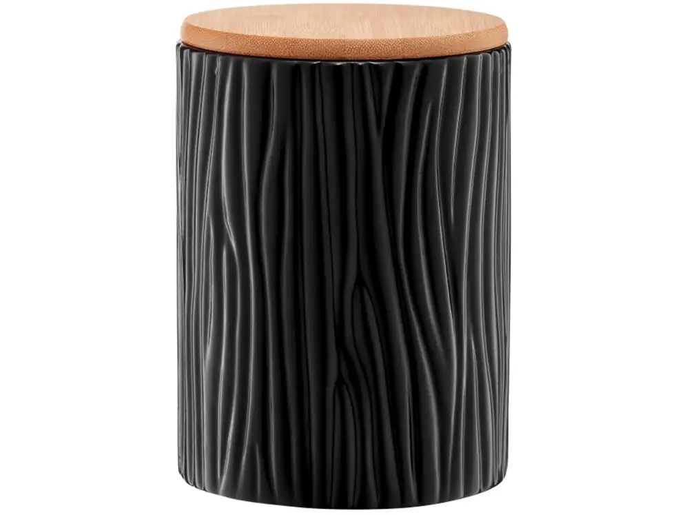AMBITION TUVO Pojemnik z wytłoczeniami z bambusową pokrywką 1,1 l / czarny / ceramika