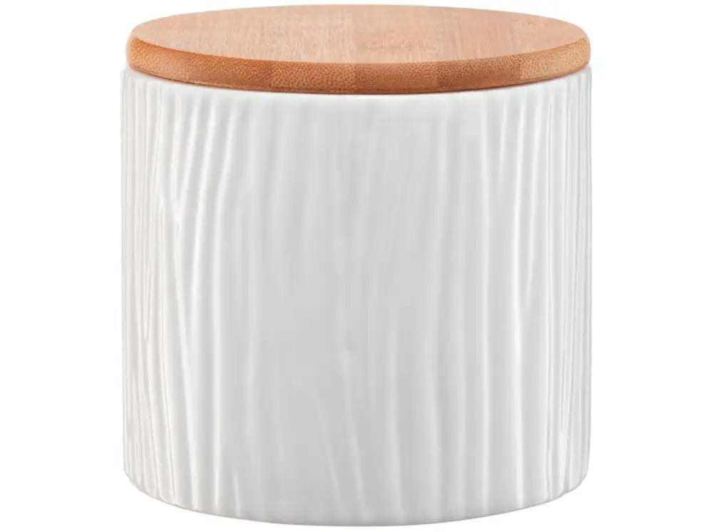 AMBITION TUVO Pojemnik z wytłoczeniami z bambusową pokrywką 670 ml / biały / ceramika