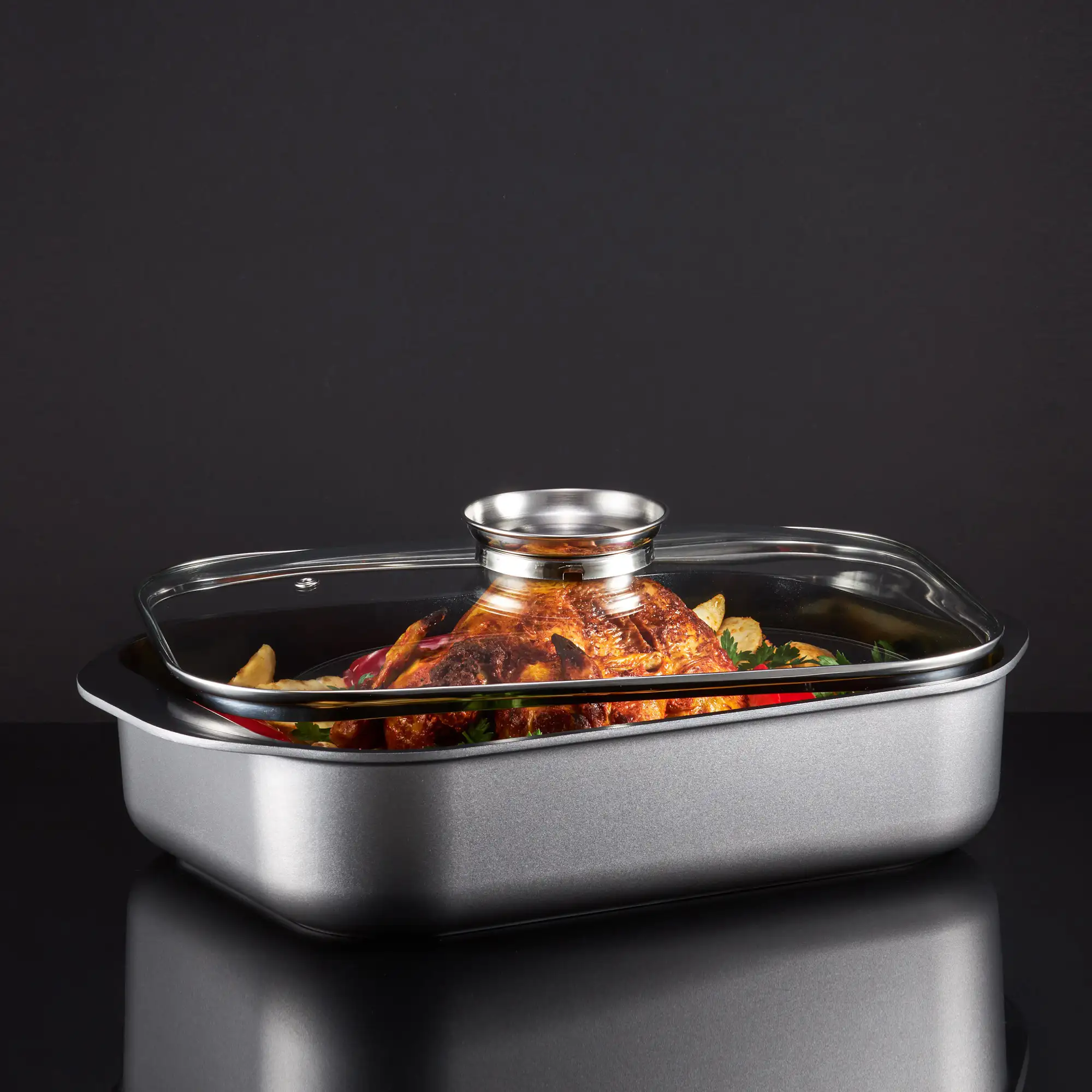 AMBITION VERSO Brytfanna ze szklaną pokrywą 40 x 25 cm / powłoka Qualum Ceramic