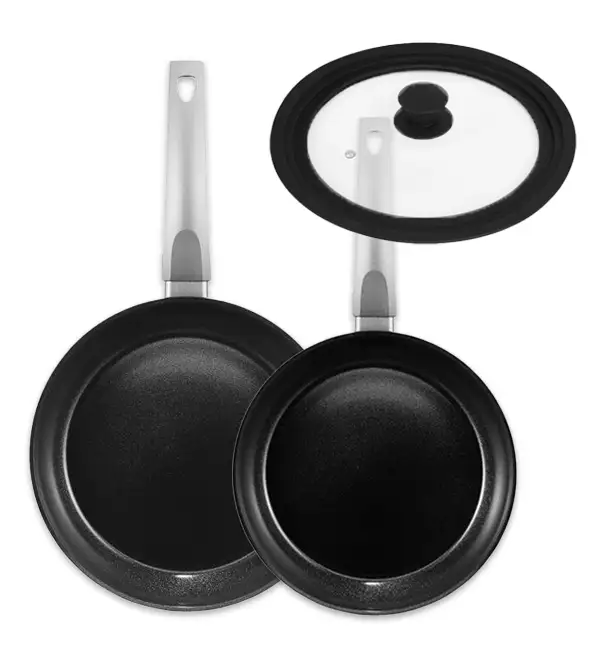 AMBITION VERSO Komplet patelni 24, 28 cm + pokrywka uniwersalna TADAR / powłoka Qualum Ceramic / indukcja