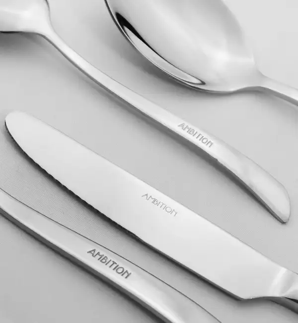 UWAGA! Zgodnie z rekomendacją producenta marki Ambition, przed pierwszym użyciem, sztućce należy umyć ręcznie, w letniej wodzie z łagodnym detergentem w celu usunięcia pozostałości produkcyjnych. Po wykonaniu pierwszego mycia dopuszcza się ich dalsze czyszczenie w zmywarce, zgodnie z ogólnymi zasadami użytkowania dla produktów stalowych.