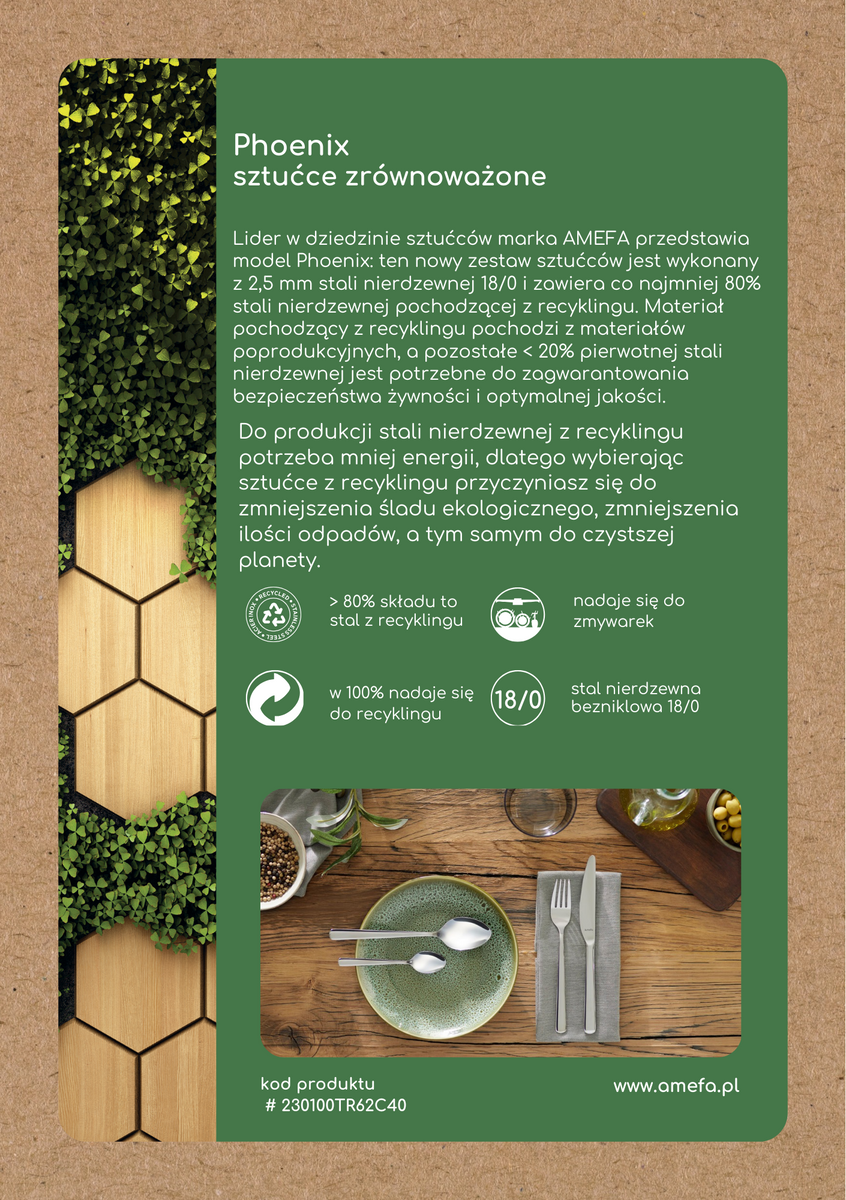 AMEFA PHOENIX Komplet sztućców z recyklingu 24 el dla 6 os w pudełku