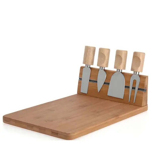 EXCELLENT HOUSEWARE Deska do krojenia, serwowania serów z akcesoriami 5 el / drewno bambusowe