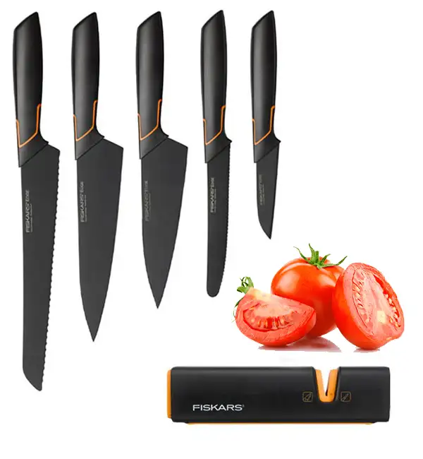 FISKARS EDGE FSEL7 Komplet 5 noży kuchennych + ostrzałka Fiskars Edge / japońska stal nierdzewna