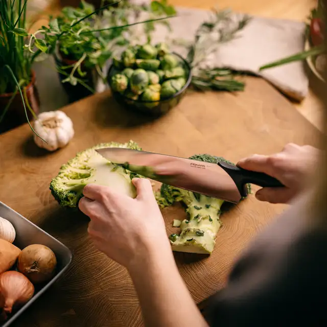 • Wysokiej jakości nóż szefa kuchni, fińskiego producenta Fiskars