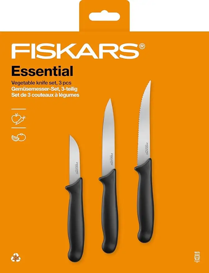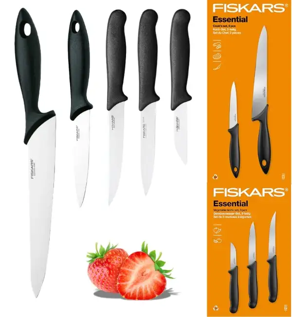 FISKARS ESSENTIAL Komplet 5 noży (kuchenne +do warzyw) w pudełku | stal nierdzewna HRC 53