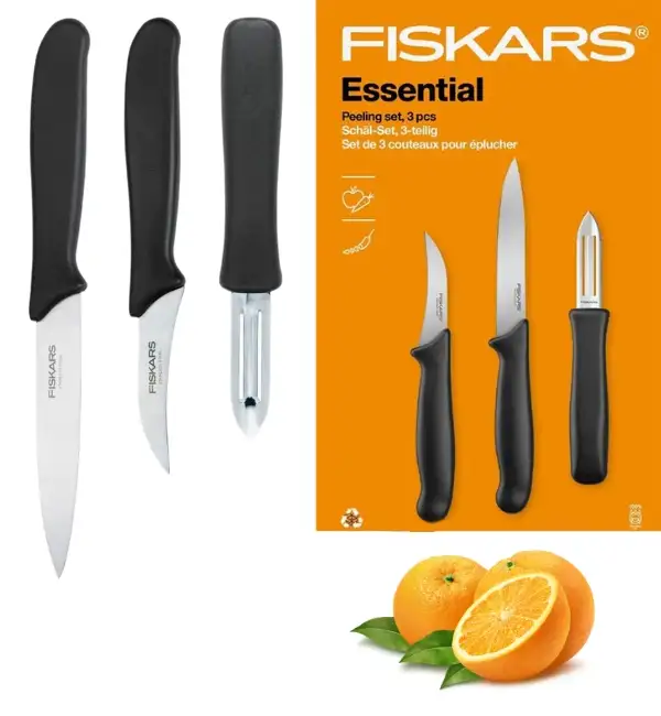 FISKARS ESSENTIAL Zestaw 3 noży do obierania / stal nierdzewna + tworzywo sztuczne