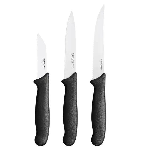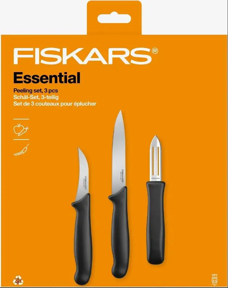 FISKARS ESSENTIAL Zestaw 9 noży (kuchenne +do warzyw +do obierania) w pudełku + Ostrzałka + Skrobaczka ESSENTIAL
