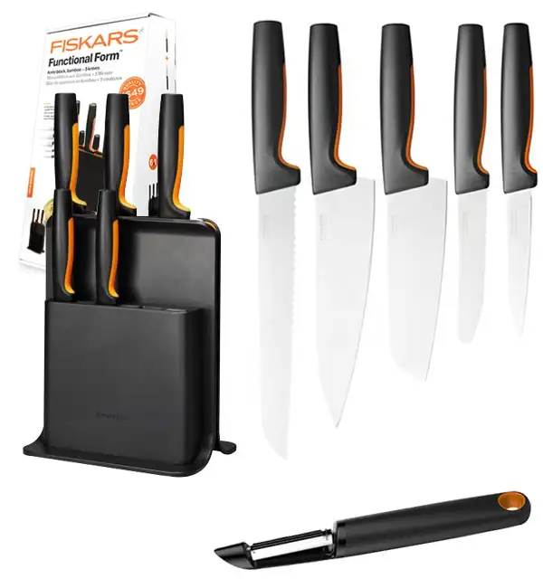 FISKARS FUNCTIONAL FORM 1057554 Komplet 5 noży w bloku czarnym + Obierak FF