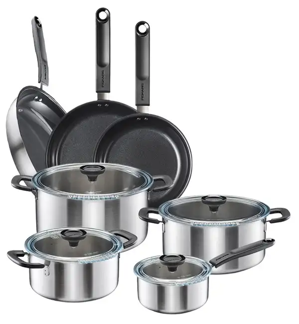 FISKARS FUNCTIONAL FORM Komplet garnki z pokrywkami 8 el + Patelnie 20, 24, 28 cm / powłoka Ceratec™