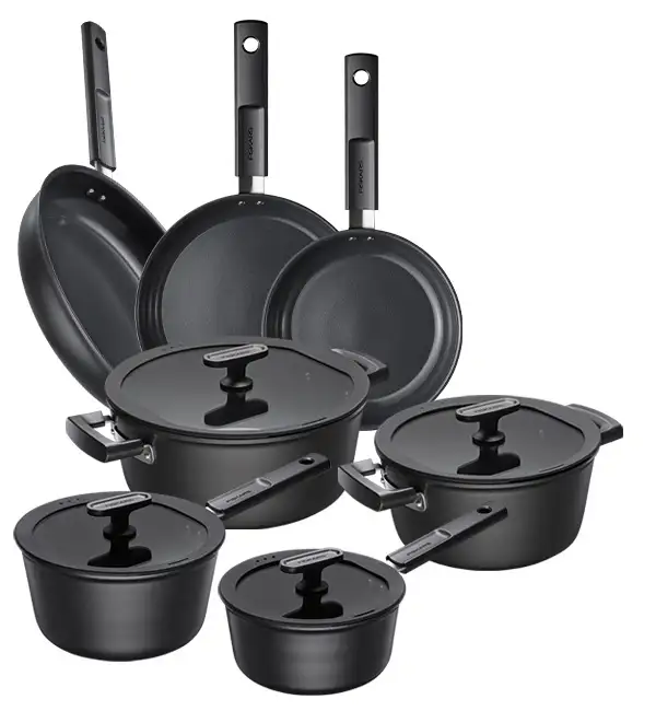 FISKARS HARD FACE Komplet garnki z pokrywkami 8 el + Patelnie 20, 24, 28 cm / powłoka Ceratec™ Superior