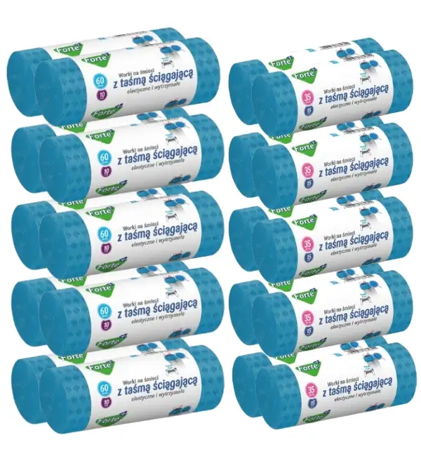 FORTE+ Komplet 10x Worki na śmieci 35 L | 15 szt. + 10x Worki na śmieci 60 L | 10 szt. / LDPE / z taśmą i przetłoczeniami