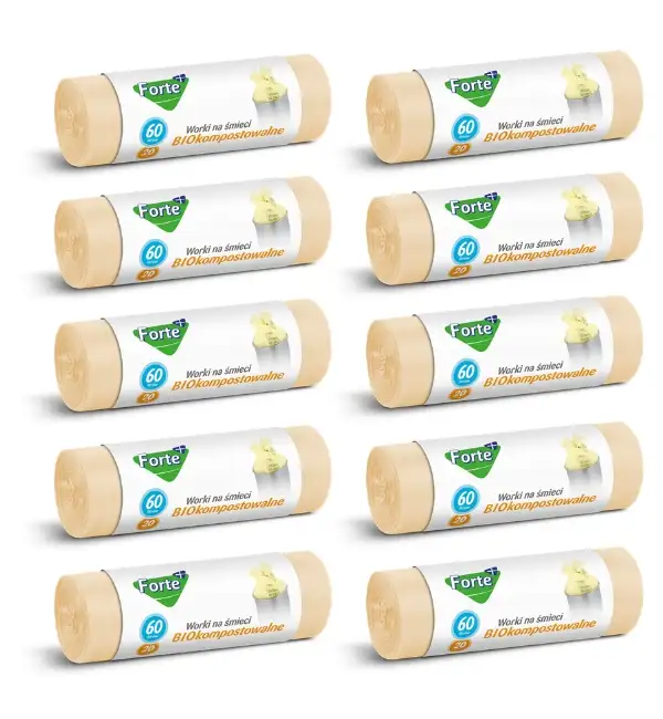 FORTE+ Komplet 10x Worki na śmieci 60 L / 20 szt. / BIOkompostowalne