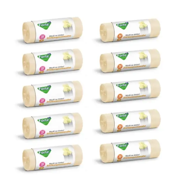 FORTE+ Komplet 5x Worki na śmieci 20 L | 20 szt. + 5x Worki na śmieci 35 L | 20 szt. / BIOkompostowalne