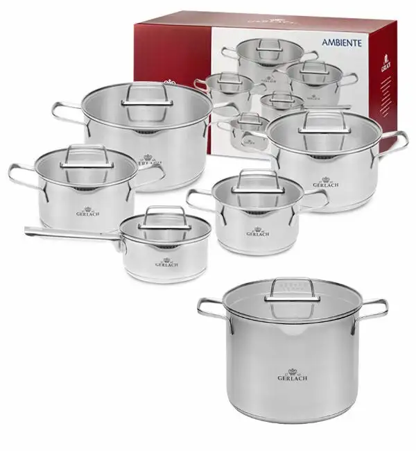 GERLACH AMBIENTE Komplet Garnki z pokrywkami 10 el + Garnek Ambiente 7 l / stal nierdzewna / indukcja