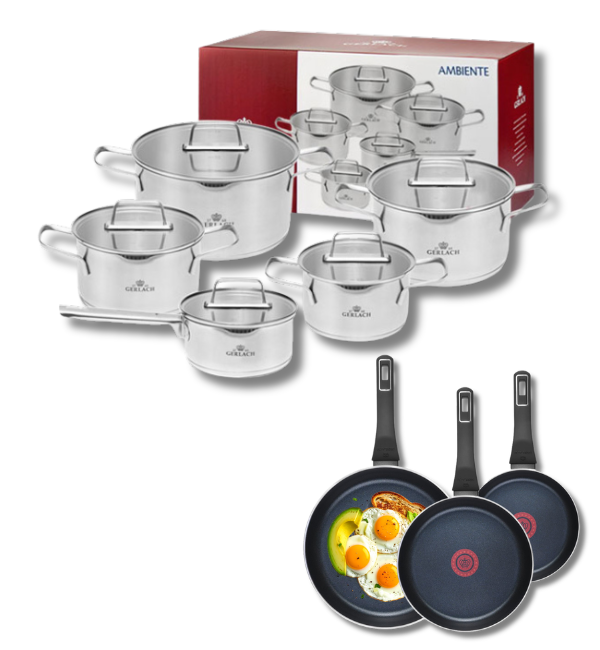 GERLACH AMBIENTE Komplet Garnki z pokrywkami 10 el + Patelnie Ambiente ThermoCoat 20, 24, 28 cm / stal nierdzewna / indukcja