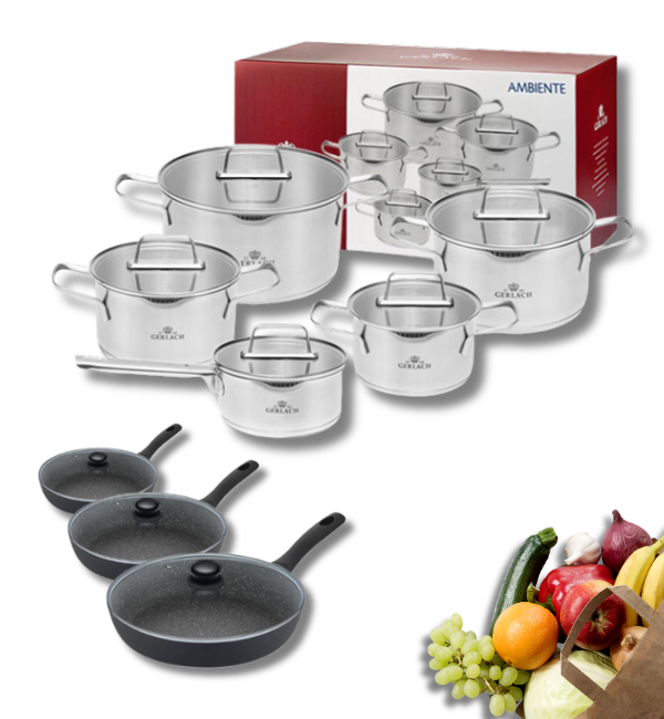 GERLACH AMBIENTE Komplet Garnki z pokrywkami 10 el + Patelnie Granitex 20, 24, 28 cm z pokrywkami / stal nierdzewna / indukcja