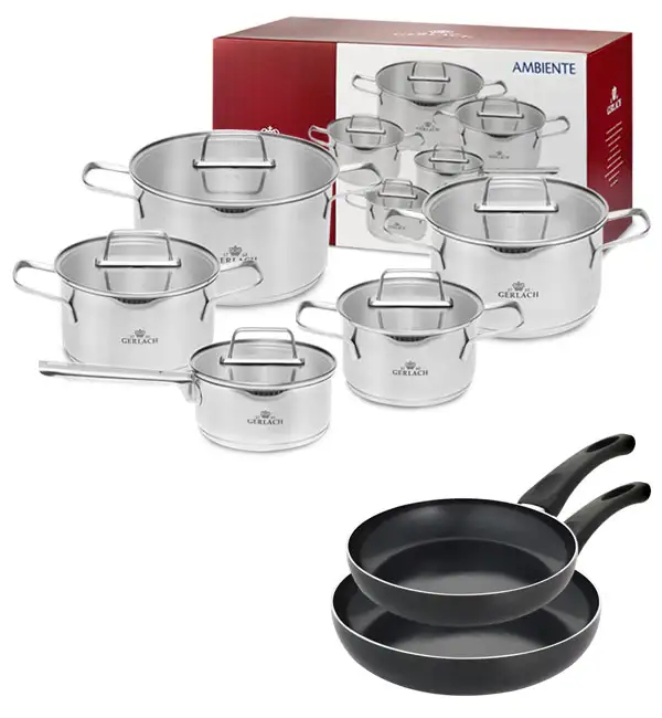 GERLACH AMBIENTE Komplet Garnki z pokrywkami 10 el + Patelnie Initial 24, 28 cm / stal nierdzewna / indukcja