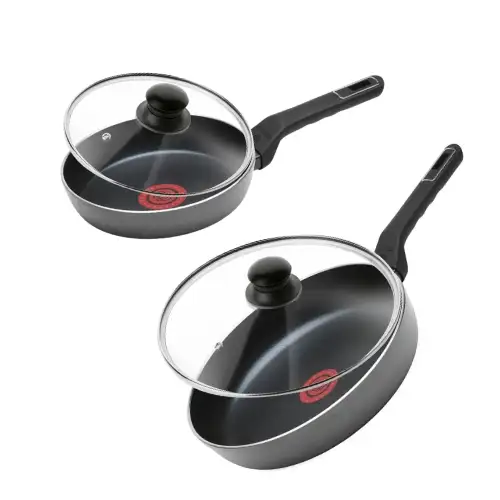 • Uniwersalne pokrywki kompatybilne z obiema patelniami, pozwalające na zachowanie pełni smaku potraw