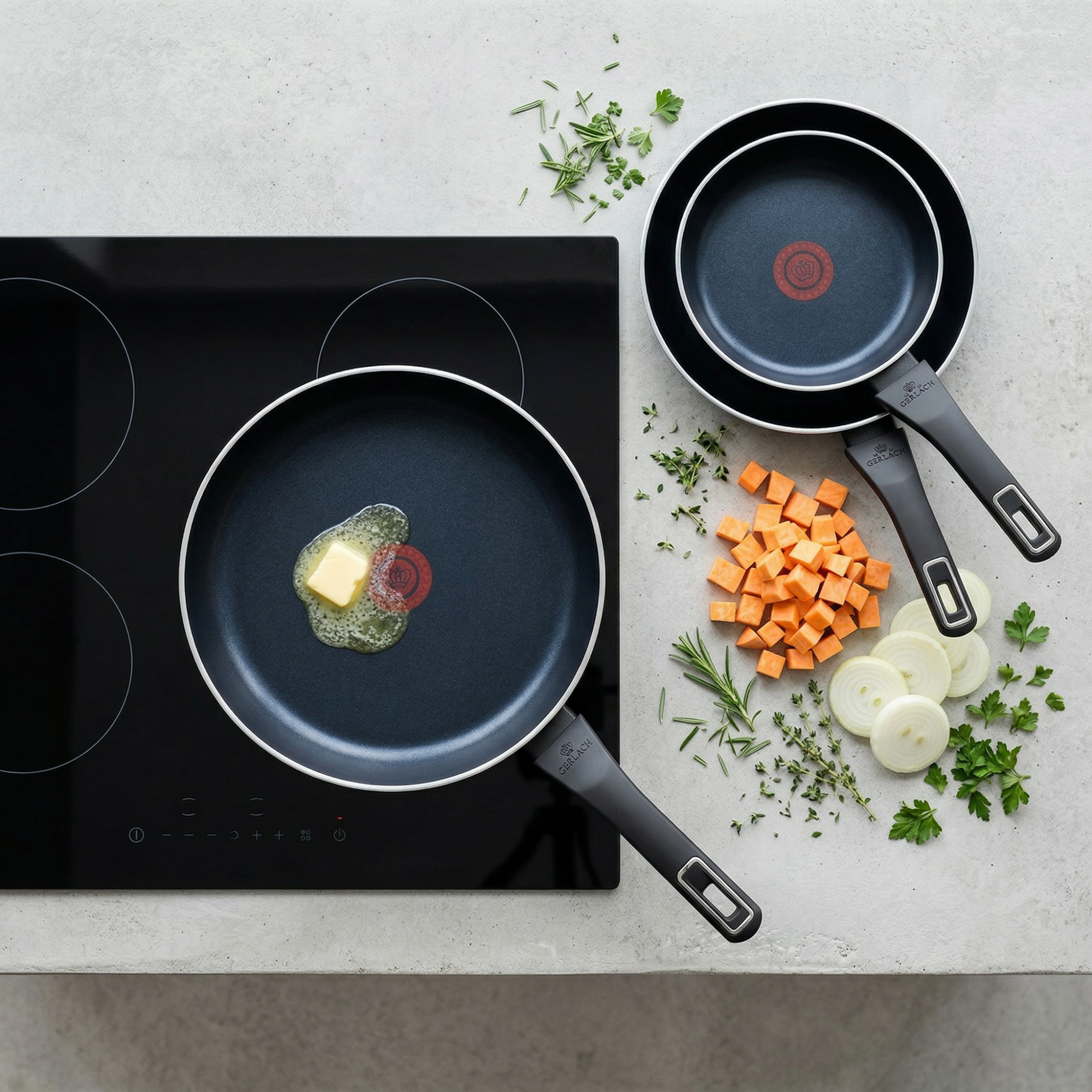 • Zestaw patelni od renomowanej marki Gerlach, gwarantujący wysoką jakość wykonania