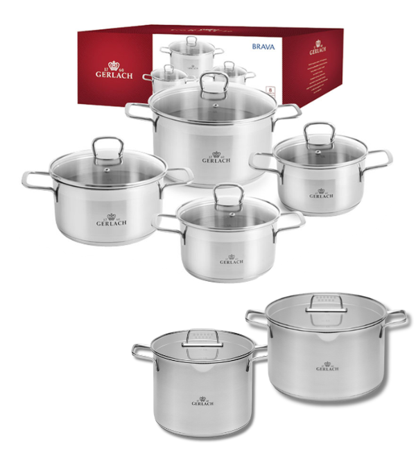 GERLACH BRAVA Komplet Garnki z pokrywkami 8 el + garnek 7 l + 10 l Gerlach Ambiente