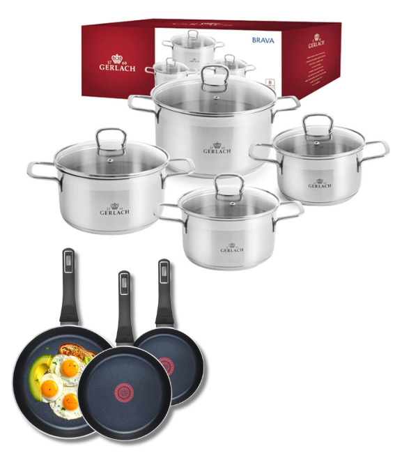 GERLACH BRAVA Komplet Garnki z pokrywkami 8 el + patelnie Gerlach Ambiente 20, 24, 28 cm