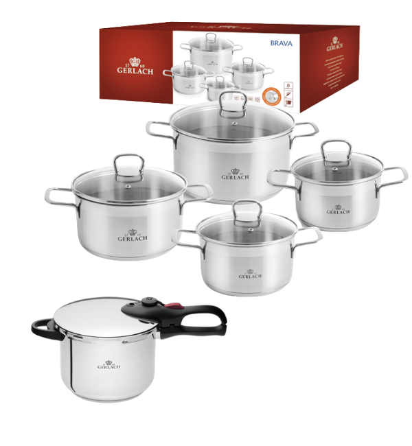 GERLACH BRAVA Komplet Garnki z pokrywkami 8 el / stal nierdzewna + Szybkowar Gerlach First 6 l
