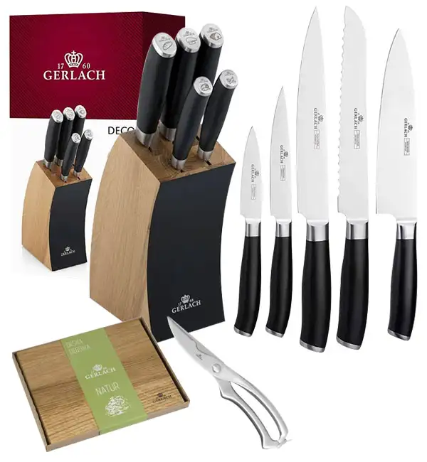 GERLACH DECO BLACK Komplet 5 noży w bloku + deska dębowa + nożyce