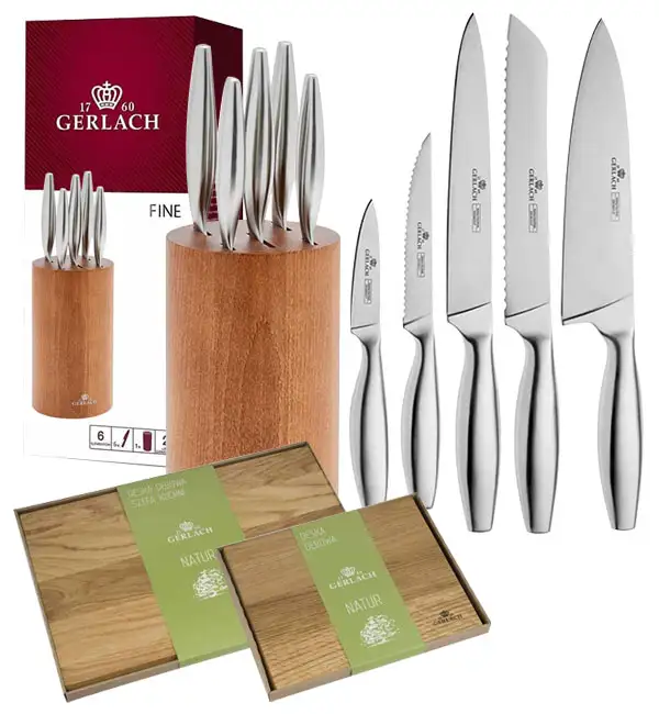 GERLACH FINE Komplet 5 noży w bloku + komplet desek