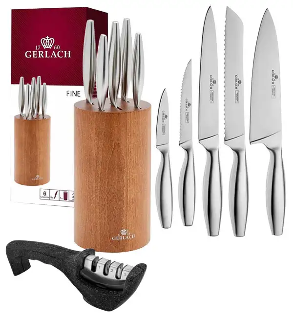 GERLACH FINE Komplet 5 noży w bloku + ostrzałka 3w1 Gerlach Granitex
