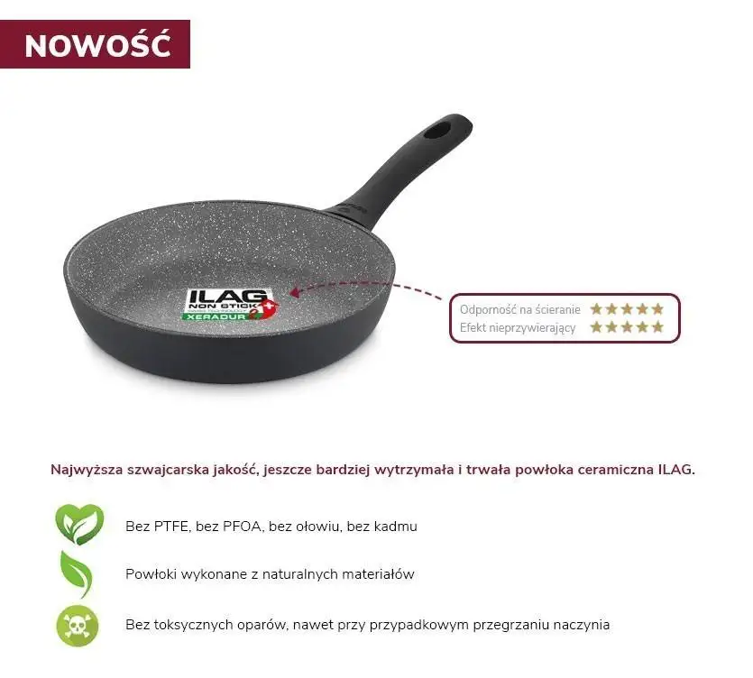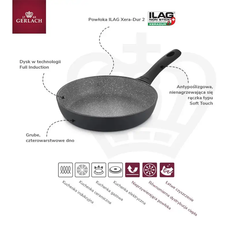 GERLACH GRANITEX GREY Patelnia z powłoką ceramiczną ILAG Xera Dur 2® 24 cm + pokrywka PSU / aluminium