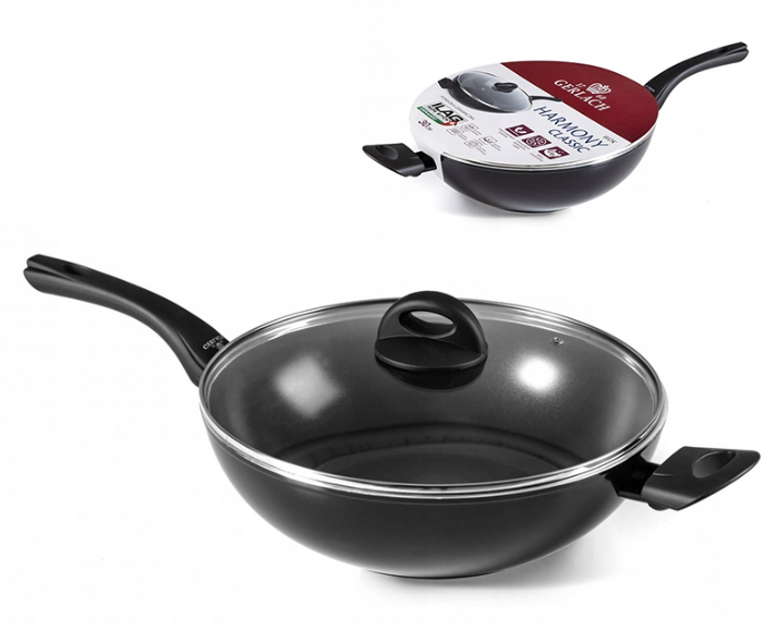 GERLACH HARMONY BLACK Wok z powłoką ceramiczną 30 cm + pokrywka / INDUKCJA
