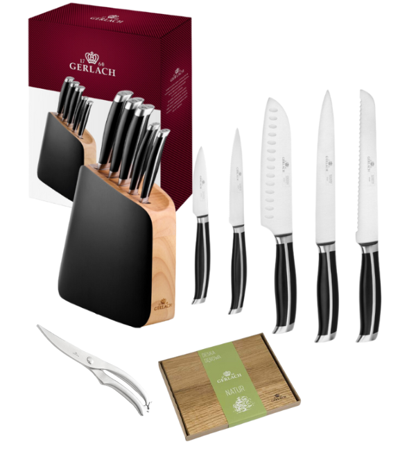 GERLACH LOFT Komplet 5 noży w bloku + nożyce do drobiu + deska