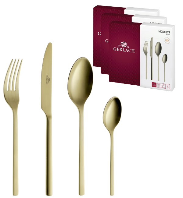 GERLACH MODERN GOLD Sztućce Komplet 72 el pudełko / 18 osób / mat / złote sztućce