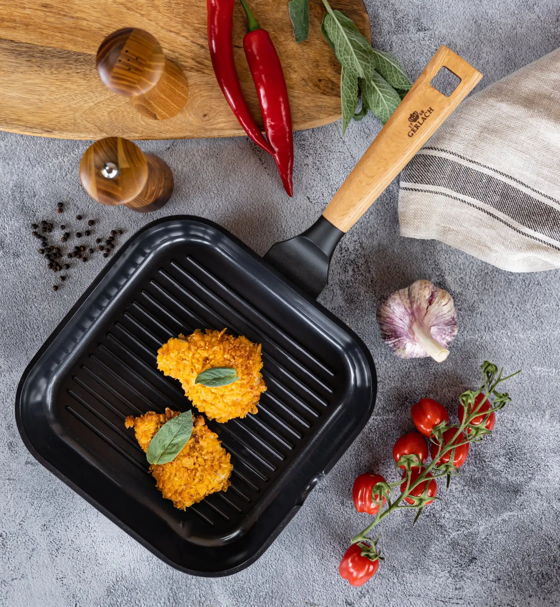 GERLACH NATUR EVO Patelnia grillowa 24 cm / powłoka ceramiczna ILAG® Non-Stick /