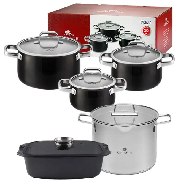 GERLACH PRIME Komplet Garnki z pokrywkami 6 el + Garnek 7 l Gerlach Ambiente + Brytfanna 32 cm Gerlach Granitex