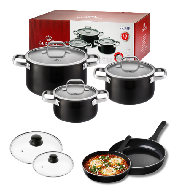 GERLACH PRIME Komplet Garnki z pokrywkami 6 el + patelnia Gerlach Harmony Classic 20, 28 cm + pokrywki