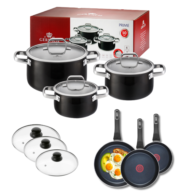 GERLACH PRIME Komplet Garnki z pokrywkami 6 el + patelnie Gerlach Ambiente 20, 24, 28 cm+ pokrywki
