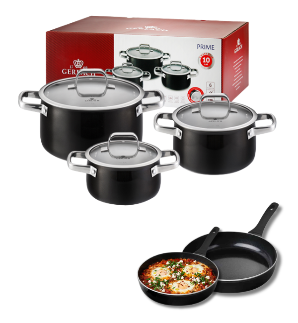 GERLACH PRIME Komplet Garnki z pokrywkami 6 el + patelnia Gerlach Harmony Classic 20, 28 cm